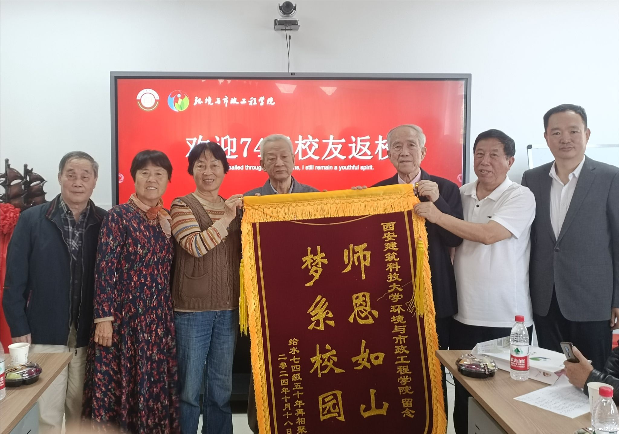 校友们表示时隔半个世纪再次回到母校非常亲切,感谢学校及老师们的培养,学校日新月异的变化,取得的傲人成绩,培养的优秀人才,无不彰显出建大人百折不挠的坚强意志和自强不息的奋斗精神,希望一代代学子传承这种精神,弘扬建大内涵,衷心祝愿母校越来越好。最后校友们同唱了当年在校时的歌曲,并向学院送上锦旗,表达了自己对老师们最诚挚的谢意和最美好的祝福。