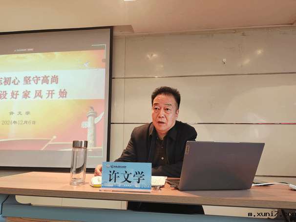 会上,许文学围绕深入学习领会习近平总书记关于家庭家教家风建设的重要论述,从家风建设的重要意义、什么是家风、怎样建设好家风、家风建设的心得体会等四个方面,通过生动的故事,深刻诠释了家风的内涵,提炼出“三步走”“两跟进”的家风建设思路举措,并结合高校立德树人实际,对干部师生加强家风建设提出了殷切期望。