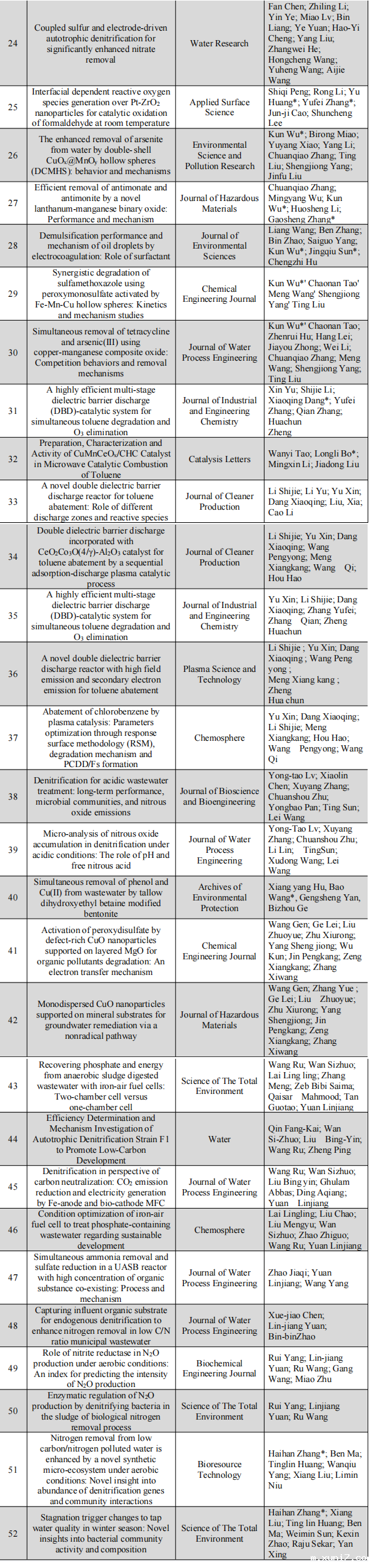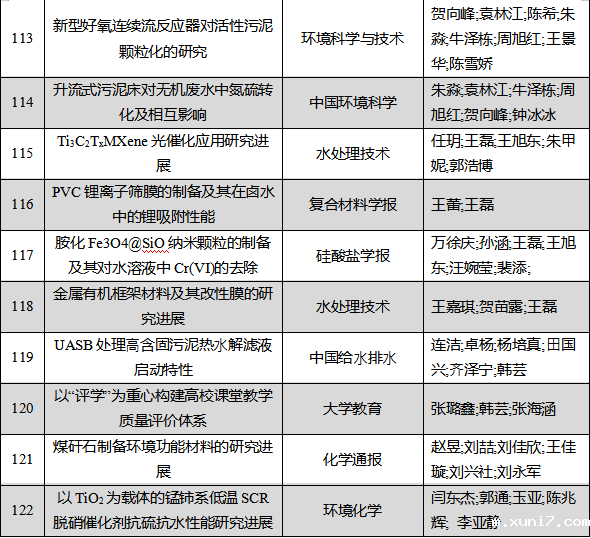 表4 2022年环境工程教研室发表论文列表