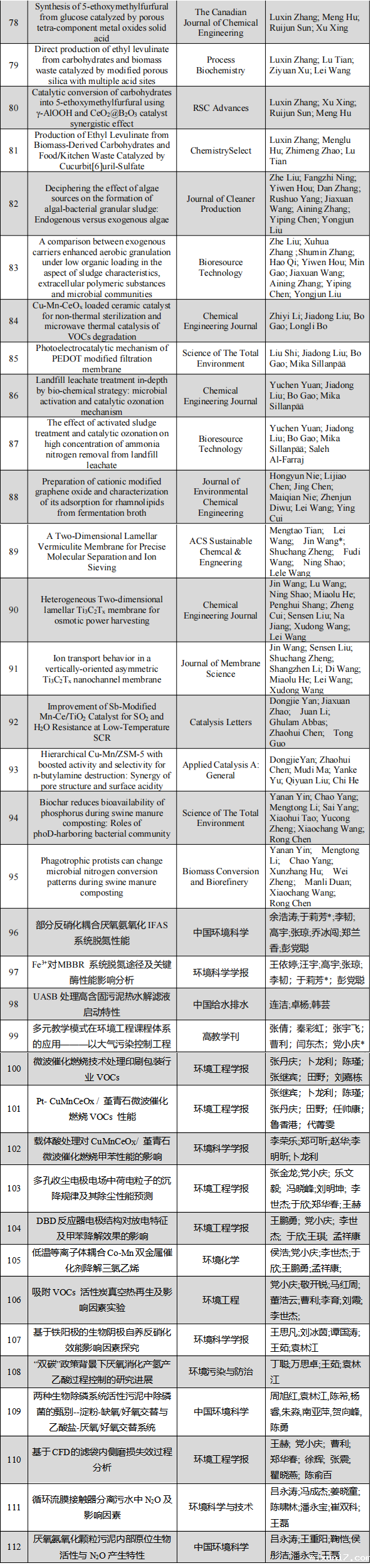2022年环境工程专业教师共发表研究论文122篇,其中SCI论文95篇(一区论文46篇、二区论文34篇),中文论文27篇(表4):