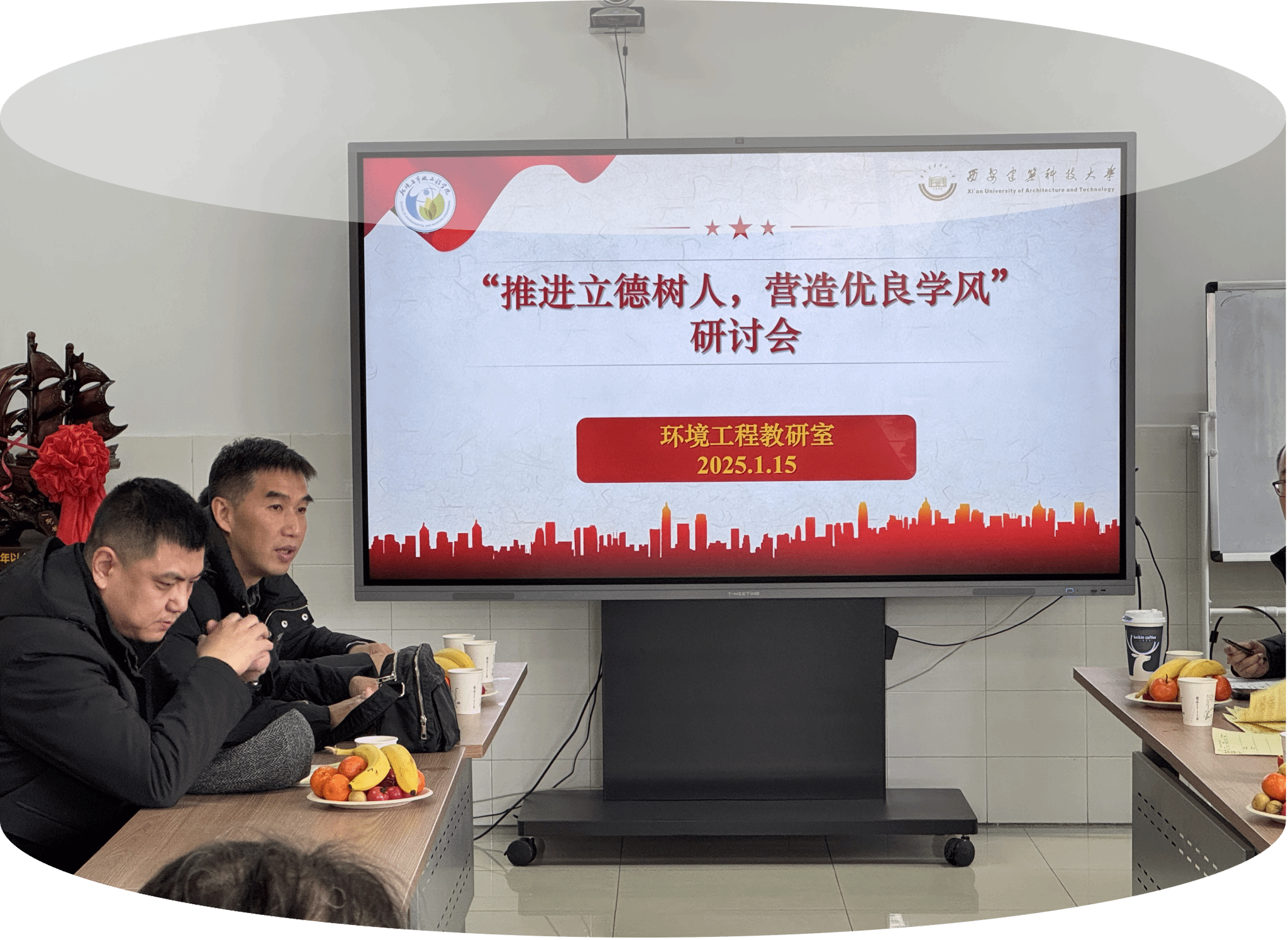 2025年1月15日下午,环境工程教研室在环工楼712召开了“推进立德树人,营造优良学风”研讨会。本次会议由环境工程教研室党支部书记郭新超主持,教研室39位教师参会。会议宗旨是在学情分析基础上,深入剖析当前学风存在的问题,充分研讨改进措施,全面落实立德树人根本任务。