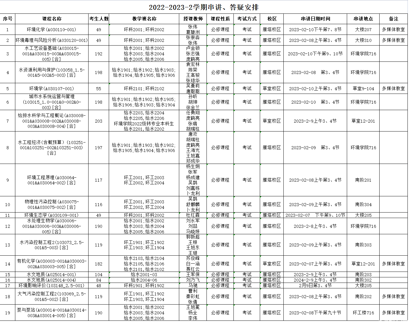 【本科生】2022-2023-2学期初串讲答疑安排