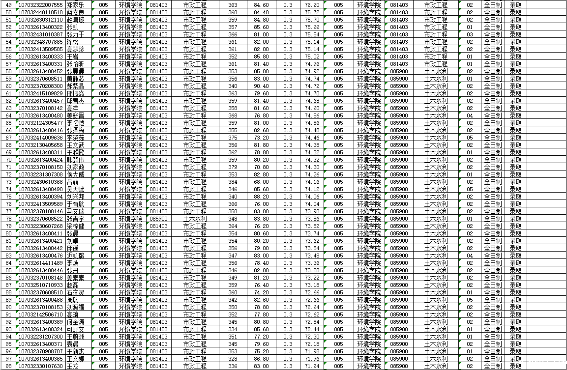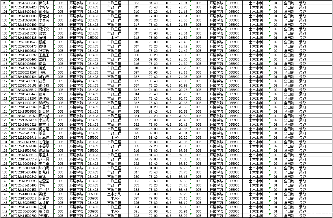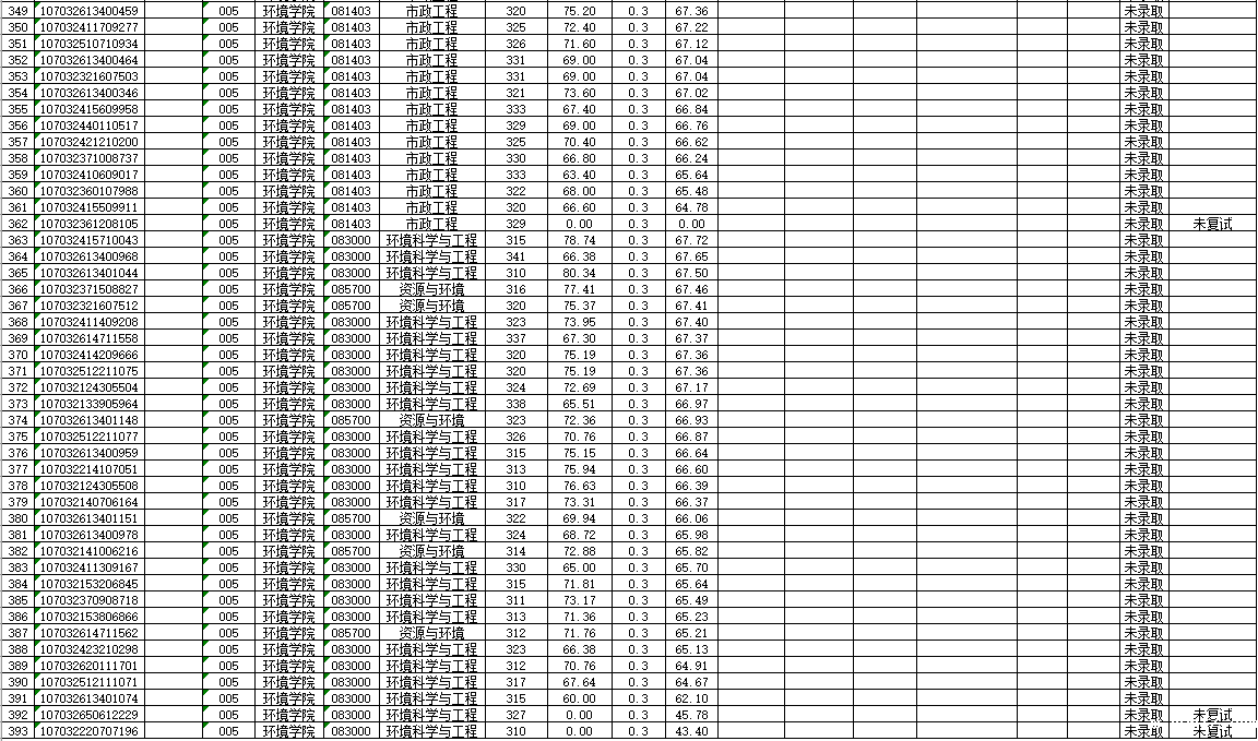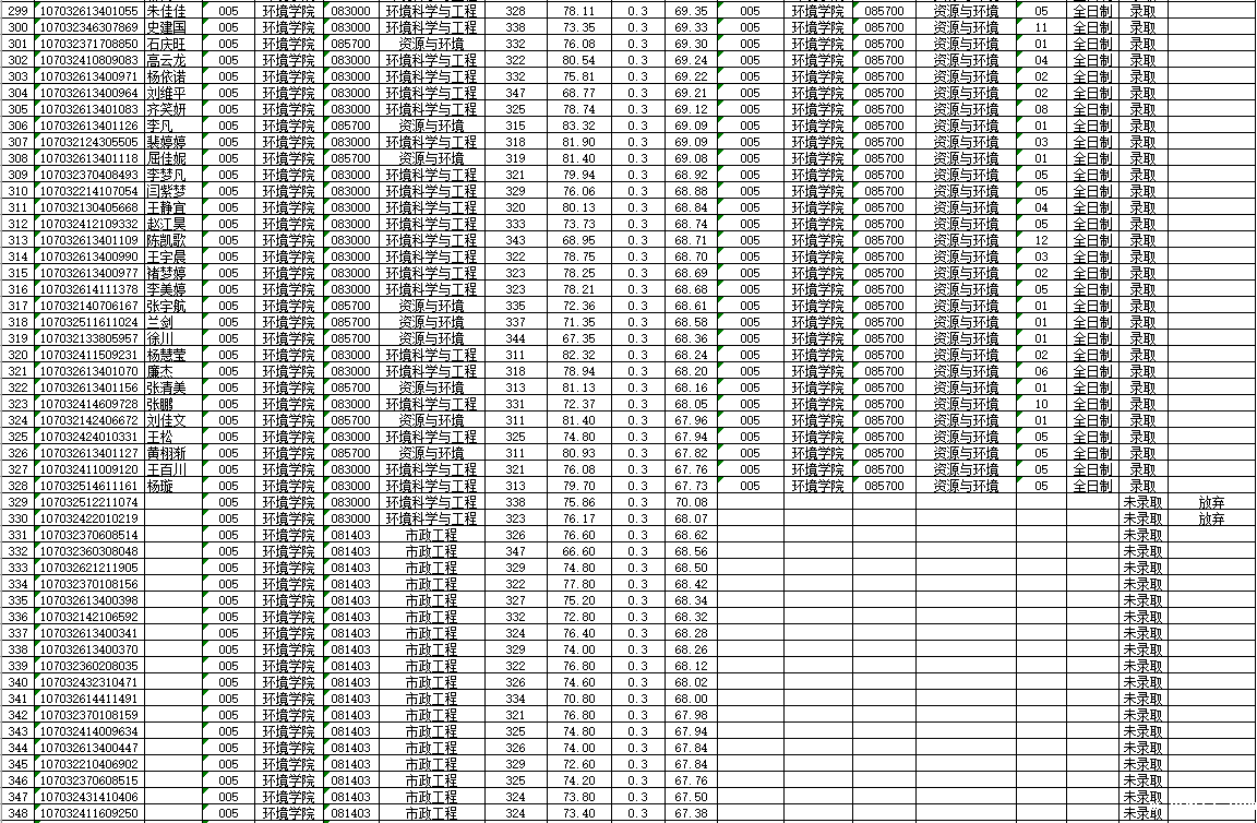 2022年3月27日环境与市政工程学院完成2022级研究生线上复试工作,共计390名考生参加复试,录取328名。录取名单详见下表: