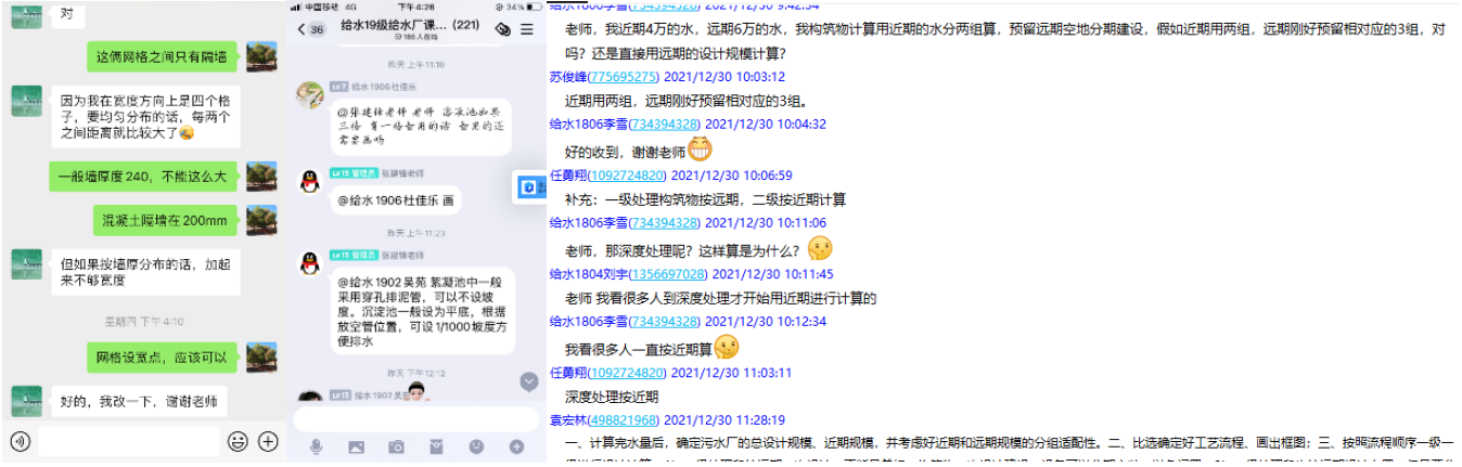 随着西安疫情大面积扩散,根据上级主管部门和学校疫情防控工作要求,我院给排水科学与工程专业大三、大四学生的课程设计也不得不从线下指导转为线上指导。为实现“停课不停学”和“线上与线下教学质量同质等效”的目标,结合课程设计的特点,给排水教研室在指导教师“一对多”分组指导的基础上,积极组建泵站设计、给水厂设计和污水处理厂设计指导团队,通过QQ群和微信群及时解答学生疑问,确保了多门课程设计的顺利进行。