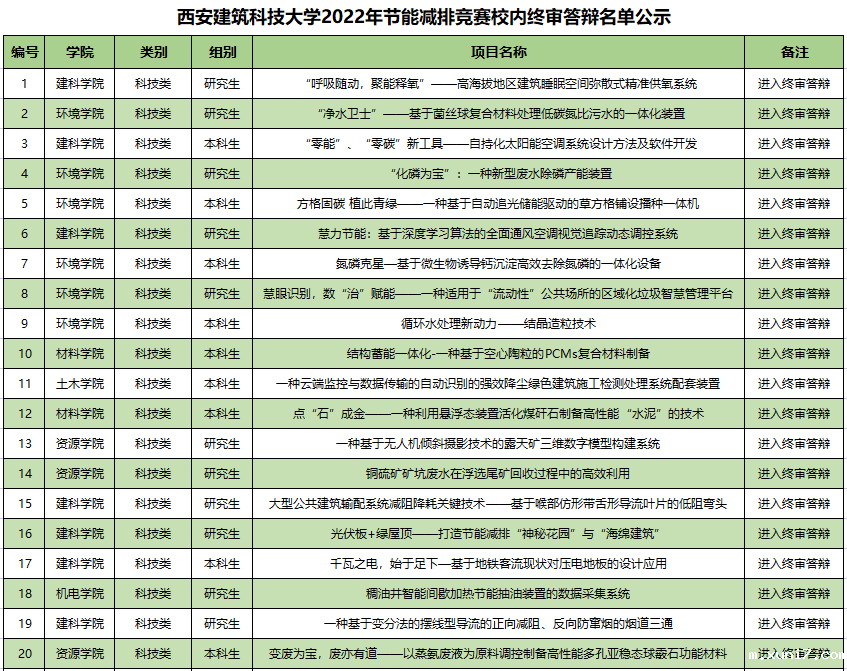 校赛终审答辩须知:终审答辩暂定于5月9日举行,现场答辩陈述时间不超过5分钟,请各团队及时加入终审答辩通知群(QQ群:204185705),于5月8日下午6点前将答辩PPT发至邮箱jnjp@xauat.edn.cn;科技实物类作品请务必在终审答辩时提供实物或模型,希望各团队积极与指导老师沟通,认真准备终审答辩,期待各团队取得优异成绩。