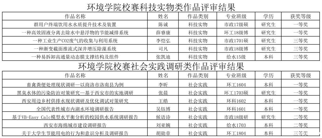 环境学院校赛科技实物类作品评审结果环境学院校赛社会实践调研类作品评审结果