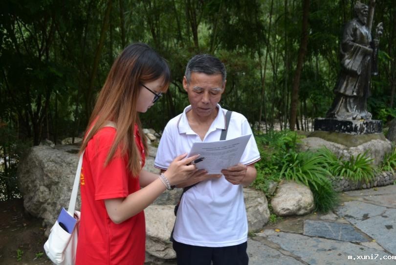 图为团队成员在终南山寨协助当地人民填写调查问卷。通讯员 任治锦 摄