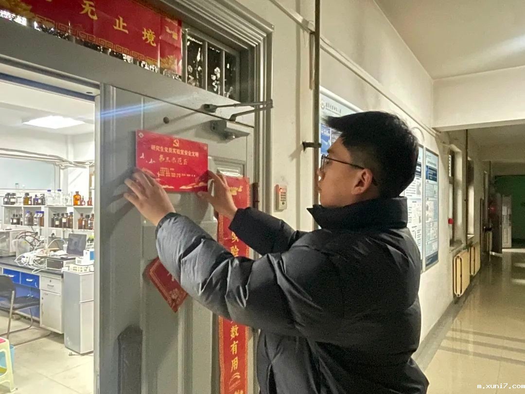会后,与会师生一同前往实验室、宿舍进行挂牌。