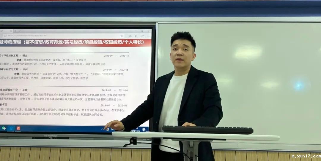 随后,郎福森同学作交流分享。郎福森同学是我校环境学院2018级本科生,硕士毕业于英国曼彻斯特大学,本科期间担任西建大环境学院新媒体中心主任、校党委宣传部官媒技术部负责人,先后在宝洁P&G、保利发展、融创中国等企业实习,现就职于龙湖集团西郑公司。他以求职过程中自身体会为切入点,就提升就业能力和职业生涯规划等问题,鼓励同学们化“被动”为“主动”,抓住竞聘岗位业务核心,在简历、面试等环节针对性下功夫。对于部分工科领域女生存在就业限制的问题,他提到要找准自身定位,坚定内心,适时转换赛道,在不同方向类型的实践尝试中选择出适合自己的就业目标,发光发热。