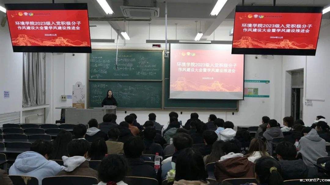 2024年11月27日17:40,环境学院在学府城9-211召开2023级本科生入党积极分子作风建设会议。本次会议旨在增强入党积极分子的组织纪律性,进而提高同学们的政治觉悟。环境学院2023级本科生入党积极分子参加会议。
