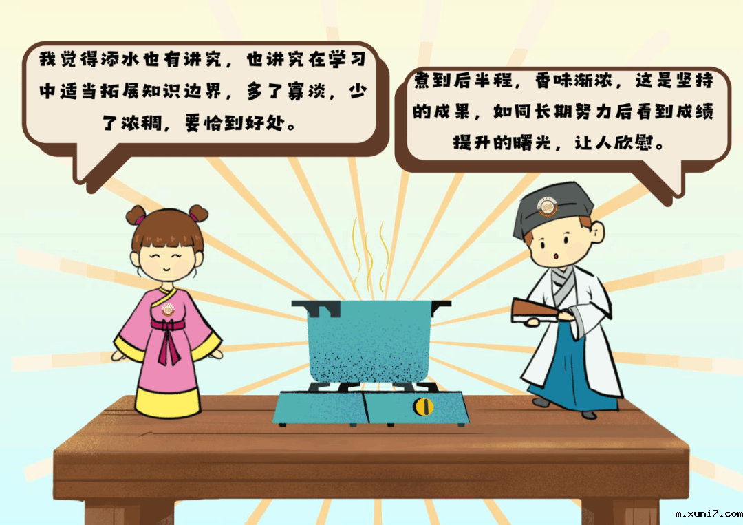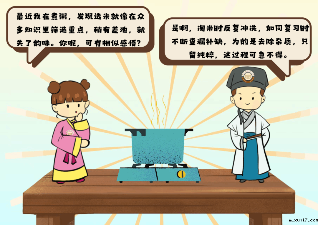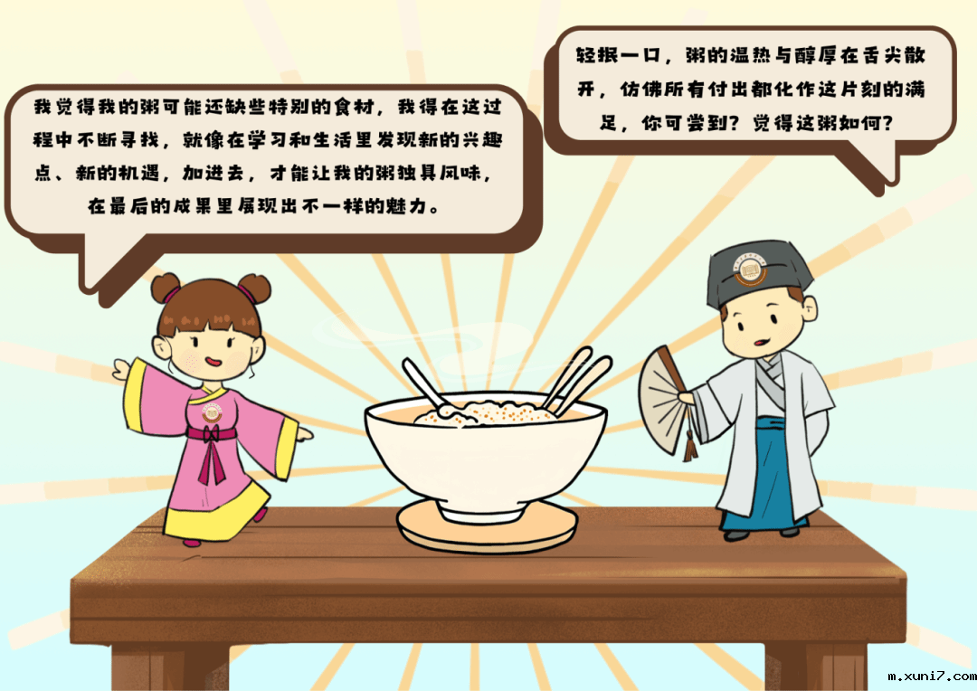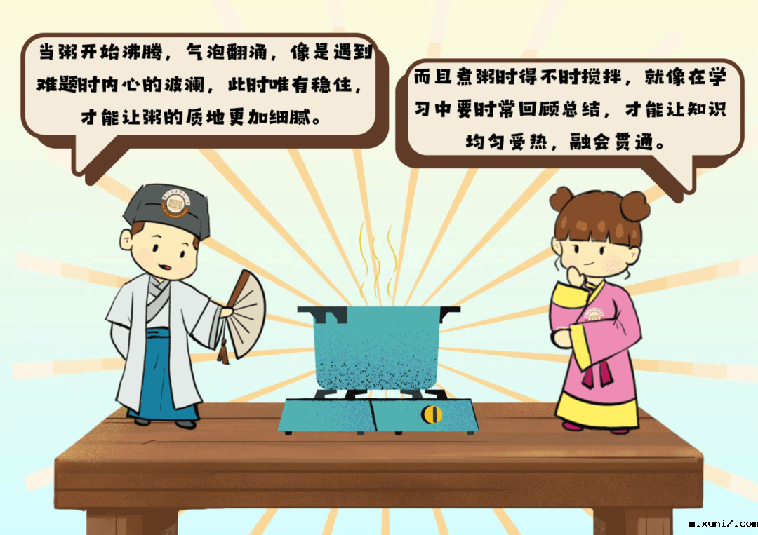 在熬考试“粥”的过程中,我们或许会感到疲惫,或许会焦虑。但在这其中的每一步中,每一粒米都是你曾累下的基础,每一滴水都是你曾做过的努力,喝下这碗考试“粥”,让我们在接下来的考试中共同努力!
